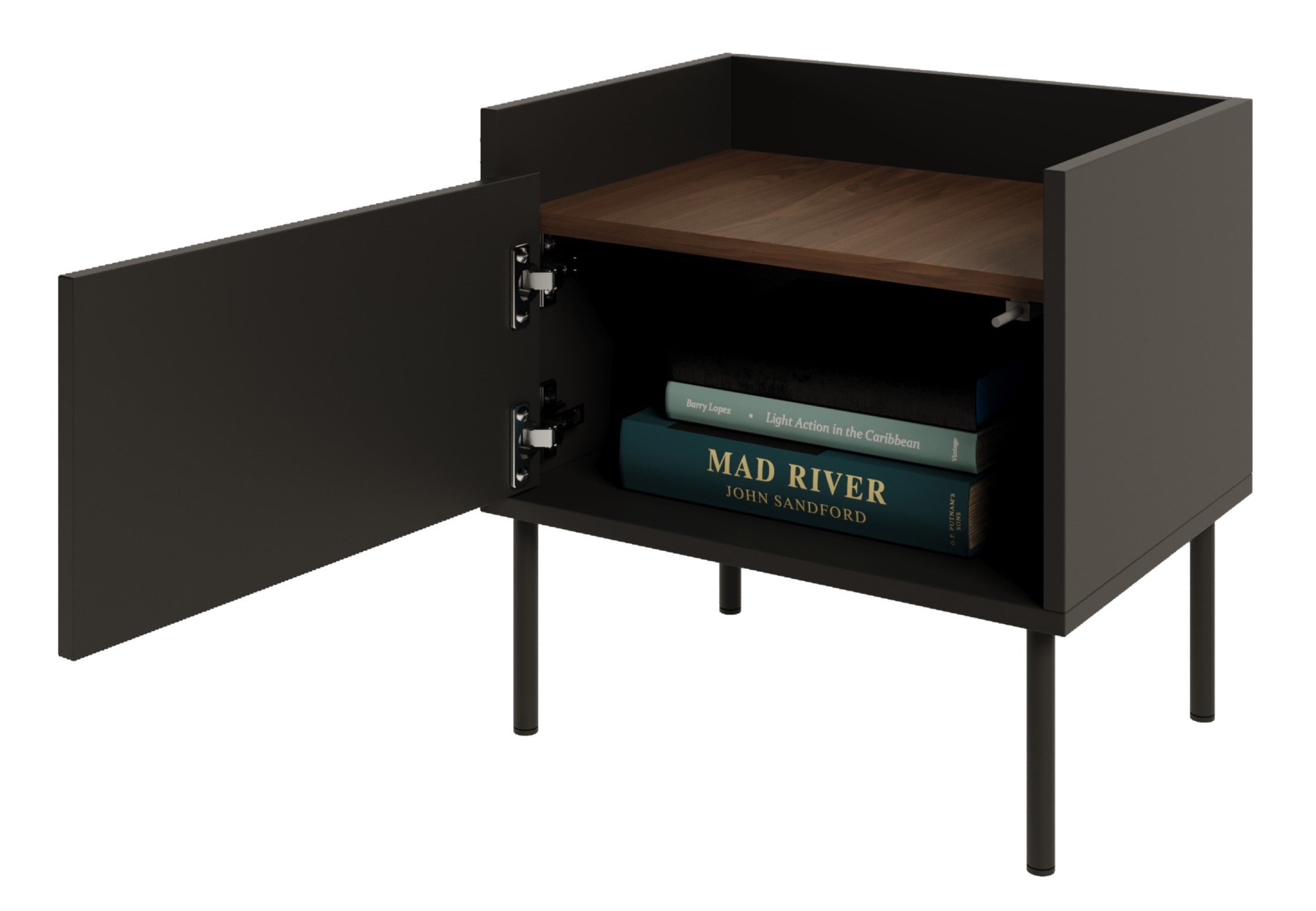 • Korpusas ir fasadas pagaminti iš laminuotos medžio drožlių plokštės (Black U999 ST12),
