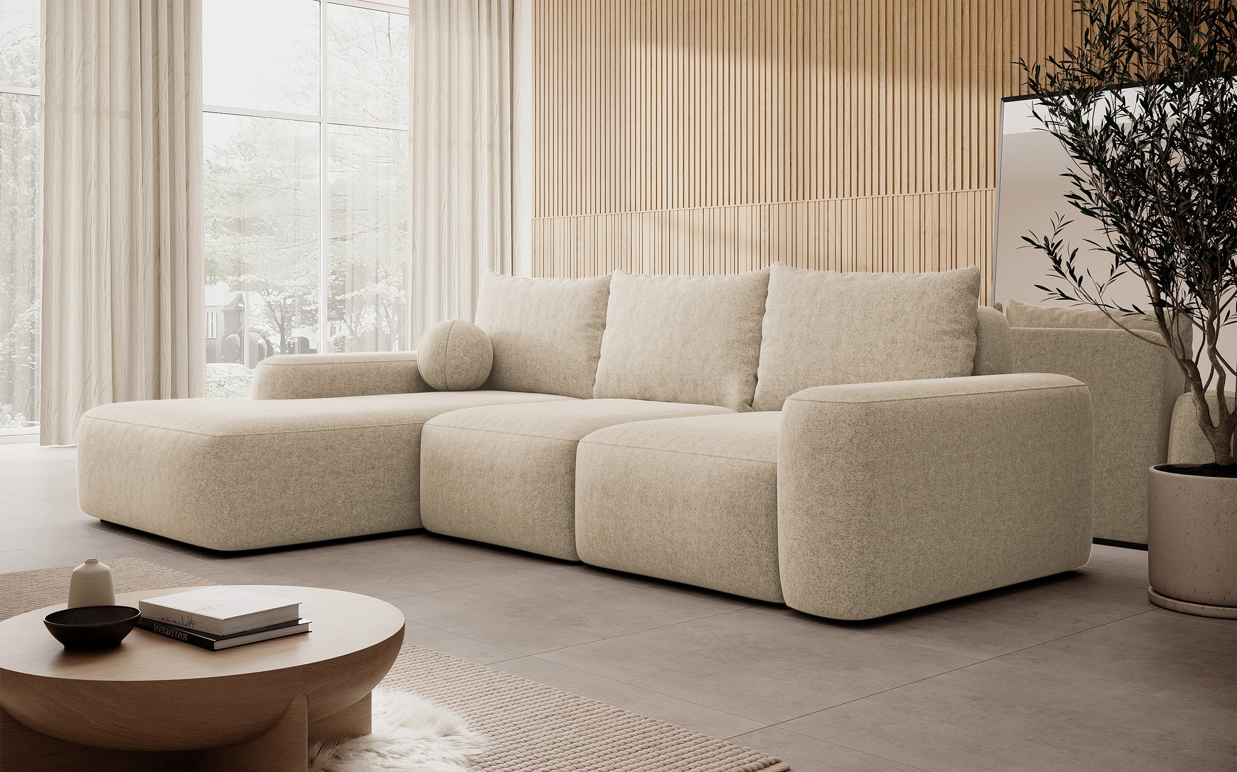 Minkštas kampas su miegojimo funkcija ir daiktadėže Carnos, kairinis