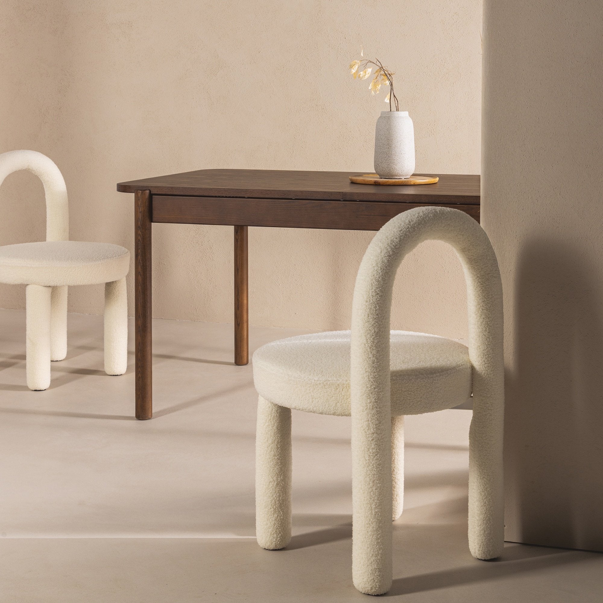 Ovi kėdė yra modernaus dizaino ir organiškų linijų derinys. Švelniai suapvalintos formos, arkinis atlošas ir ekru spalvos puokštės audinys sukuria elegantišką, jaukų baldą, puikiai tinkantį tualetiniam staliukui, svetainei ar valgomajam. Stilius, patogumas ir unikali forma viename.
